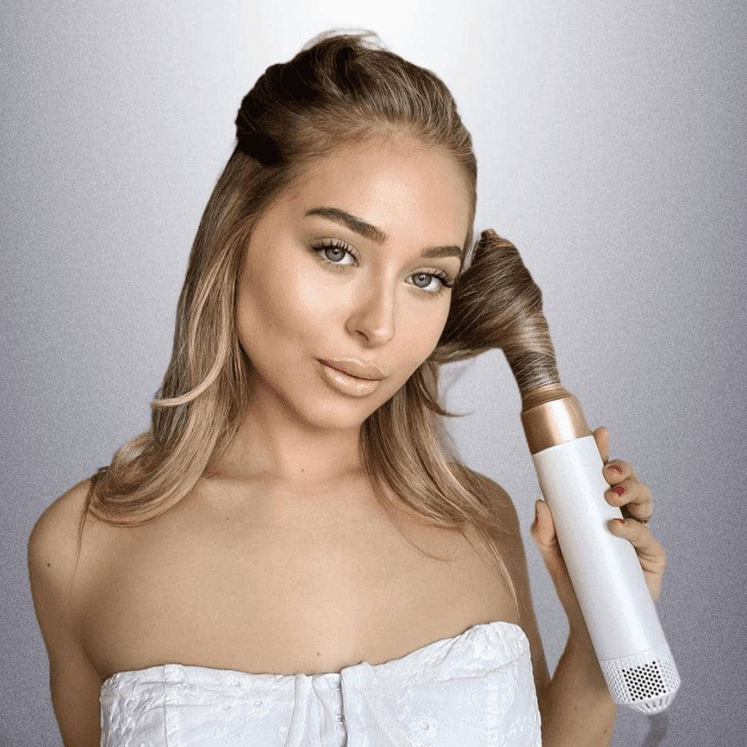 Durch den aerodynamischen Coanda-Effekt wird dein Haar auf magische Weise um den AirStyler gewickelt. Die Föhnluft weht mit hoher Geschwindigkeit am Lockenstab entlang. Dein Haar haftet an der Oberfläche und verwandelt sich in langanhaltende Wellen die den ganzen Tag halten.