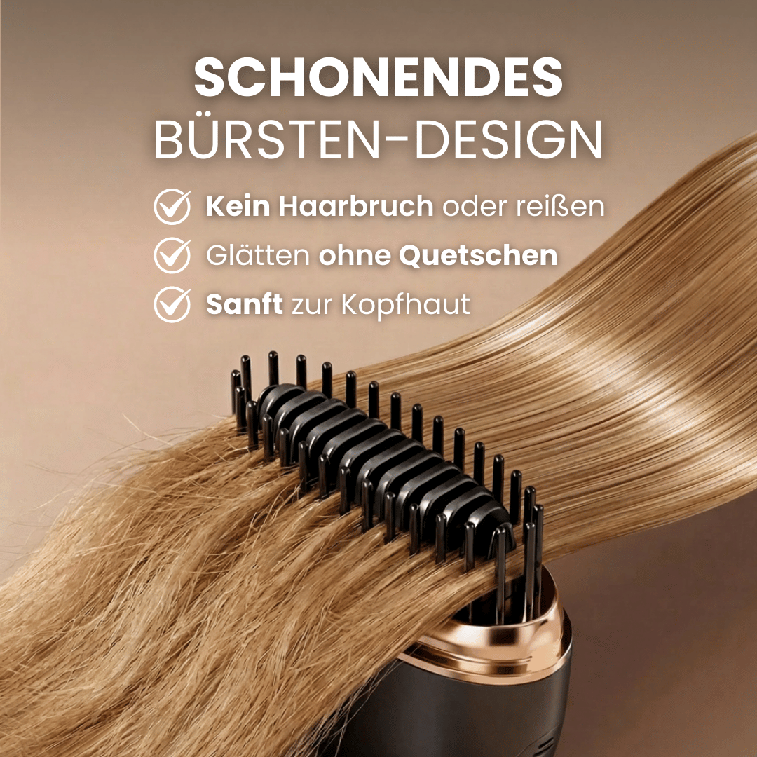 Schonendes Bürsten-Design: Abgerundete Heizborsten glätten, ohne zu quetschen, und schützen Kopfhaut und Spitzen.